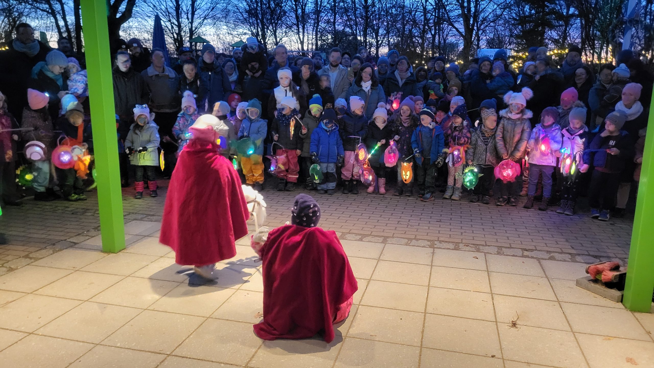 Mit strahlenden Laternen an den Stecken trafen sich die Kinder und Eltern am Martinstag im Kinderhaus-Garten. Nach ein paar warmen Begrüßungsworten seitens des Teams wurden die ersten St. Martinslieder, die die Mädchen und Buben in der letzten Zeit fleißig geprobt hatten, gesungen. Unsere mutigen Schauspielkinder führten zu Gesang das traditionelle Martinsspiel vor.