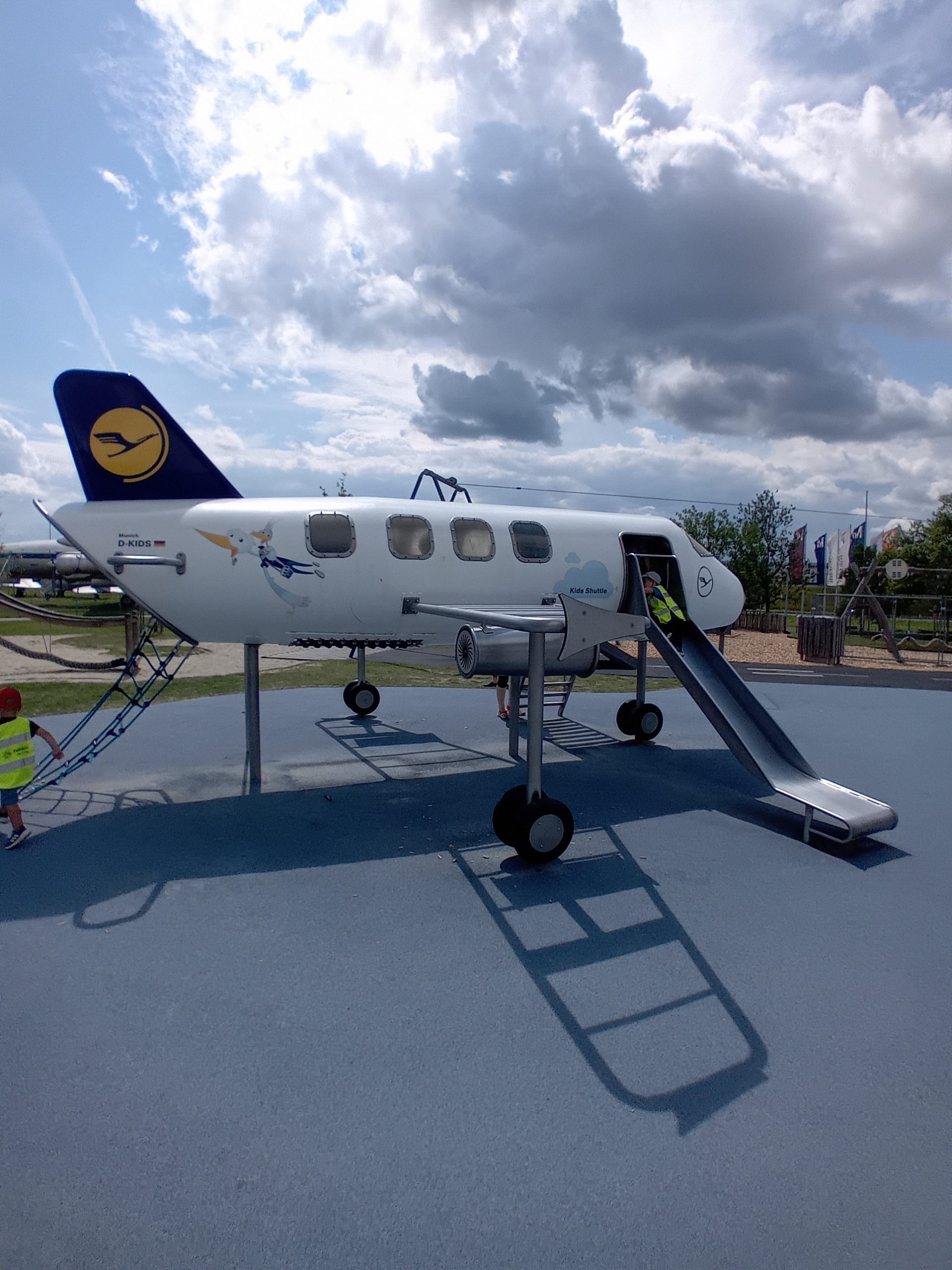 Mit dem Bus ging es vorbei an vielen großen und kleinen Flugzeugen. Wir haben gesehen, wie die Flugzeuge betankt, die Koffer ein- und ausgeladen und die Flugzeuge gewartet werden. Ein besonderes Highlight war die Landung und das Andocken eines Airbus A380. Auch an der Flughafenfeuerwehr haben wir einen Halt gemacht. Zurück am Besucherpark wurde sich erst einmal mit Wiener, Käse, Brezen und Gemüsesticks gestärkt. Danach hatten die Kinder Zeit den Spielplatz zu erkunden und sich dort nochmal so richtig auszutoben. Bevor wir uns auf den Heimweg gemacht haben, hat jedes Kind noch ein Eis bekommen. Ziemlich kaputt aber mit vielen tollen Eindrücken sind wir am Nachmittag in der Krippe angekommen.